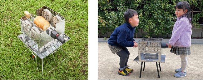 手作りの炭火バウムクーヘンが簡単に作れる。調理バーが自動で回転するので、手が疲れることなく焼きムラのないバウムクーヘンが手軽に作れて、親子で一緒に楽しめる。