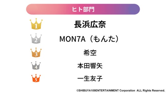 今年は「カフェ・グルメ部門」「ヒト部門」「アーティスト部門」「コンテンツ部門」 「キャラクター部門」 「SNSミーム部門」「ビューティー部門」「ファッション部門」「体験部門」の9部門を設置。ノミネート項目についてはSHIBUYA109 lab. MATEに所属する10名の高校生・大学生が選考委員となり、ノミネート選出を行うトレンド大会議を経て決定しています。