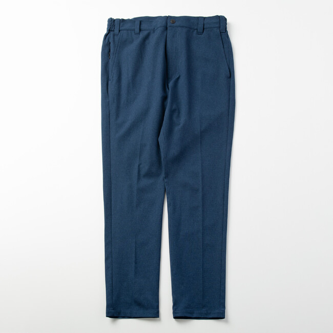 特 徴:パンツはサイドをウエストゴムにすることで快適ながらすっきりとした見た目に。右サイドポケット横の目立ちにくいコンシールファスナーを使用したポケットには、落としたくないスマホやワイヤレスイヤフォンなどの小物が収納可能。