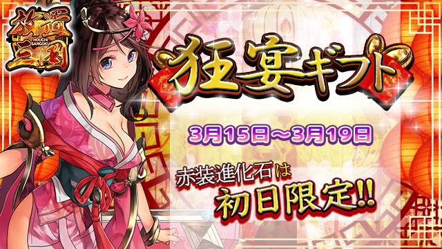 CTW株式会社は、ゲームサービス「G123.jp」にて配信中のHTML5ゲーム『放置三国』にて、2019年3月15日(金)より「狂宴ギフト」を期間限定で販売いたします。