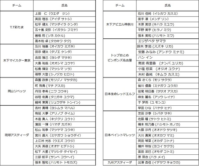 Tリーグでは、2022-2023シーズン 登録完了選手を以下の通りお知らせいたします。