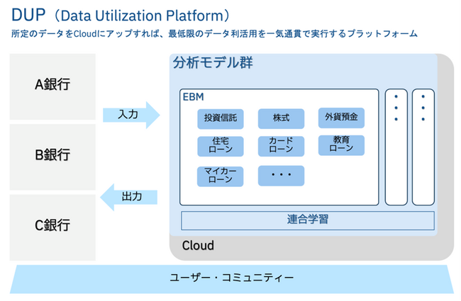 本日発表したDUPは、金融DX実現のための包括的システムアーキテクチャー「オープン・ソーシング戦略フレームワーク( https://www.ibm.com/jp-ja/industries/banking-financial-markets/digital-shift-next-generation-architecture ) 」ならびに、昨年11月に発表した金融機関の経営戦略実現を支援する「金融次世代勘定系ソリューション戦略( https://jp.newsroom.ibm.com/2022-11-10-Next-Generation-Account-Solutions-Strategy )」のデータ利活用サービスを支え、データ分析基盤とコミュニティーを提供するものです。経営レベルの課題から、顧客の行動を分析し成約につながりやすいアプローチを予測するEBM(イベント・ベースト・マーケティング)の活用まで、金融機関のデータ活用を包括的に支援します。