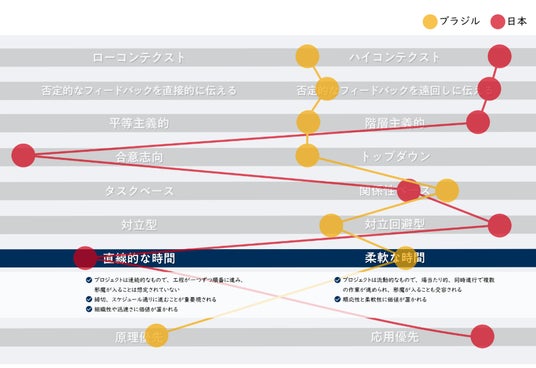 異文化理解のフレームワーク「カルチャーマップ」から“ブラジル”をピックアップし、8つの指標を説明するとともに、日本との違いを定量/定性の両面から分析し、ブラジルビジネスのプロフェッショナルによる8つの指標毎の考察を盛り込んでいます。