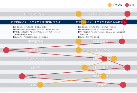 カルチャーマップの「評価」に於いて、ブラジルは日本と比べると「否定的なフィードバックを直接的に伝える」傾向がありますが、もう少し細かく見る必要があります。
