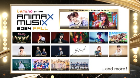 『ANIMAX MUSIX』は「アニメミュージックの魅力を世界へ」をコンセプトに、2009年からスタートしたアニメミュージックイベントです。15周年を迎えた今年の春に開催した『Lemino presents ANIMAX MUSIX 2024 SPRING』につづき、2回目の共催となる『Lemino presents ANIMAX MUSIX 2024 FALL』は、横浜アリーナで開催いたします。