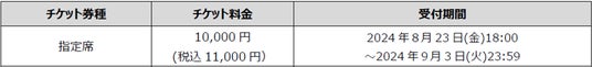 【チケット販売スケジュール】2024年8月 24日(土)10:00 ~ 【会場チケット】3,500円(税込)※1ドリンク別途 ※スタンディング・整理番号付