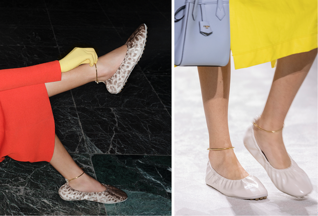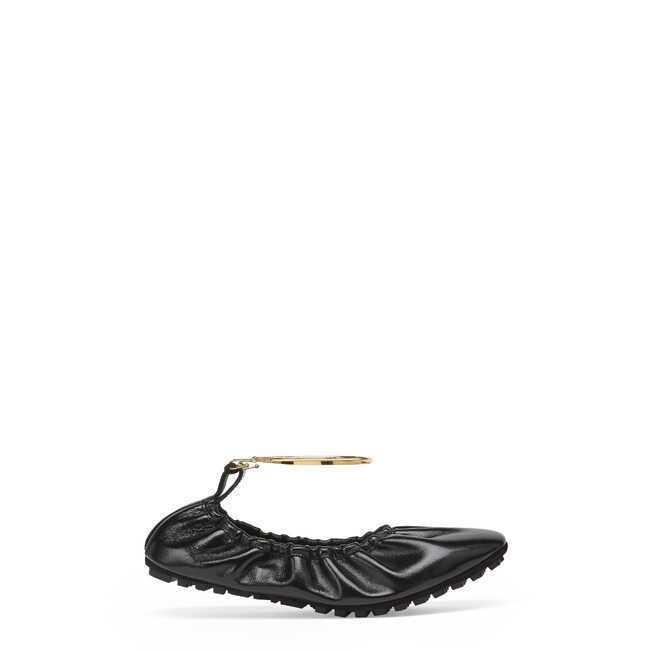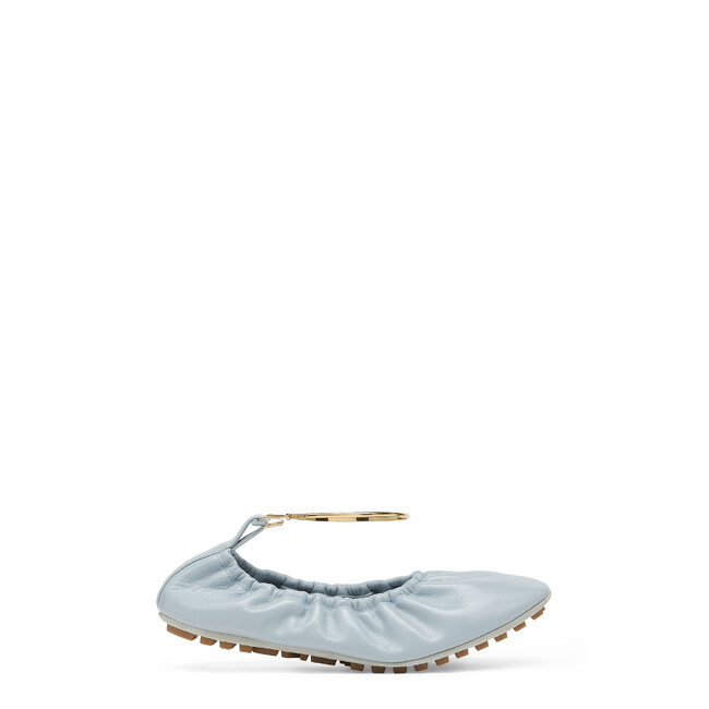 ミニマルでフェミニンなバレリーナシューズのシェイプは、洗練されたそのデザインだけでなく、完璧なフィット感と快適な履き心地を実現するさまざまなディテールが施されています。2001年春夏コレクションのサンダルから取り入れられ、シグネチャーともなっているメタリックエレメントとクロージャーは、ゴールドになった「セレリア」ステッチの機能的な表現として、天使の輪のように足首を包みます。