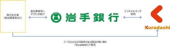 ソーシャルグッドマーケット「Kuradashi」を運営する株式会社クラダシ(本社:東京都品川区、代表取締役社長:関藤竜也、以下「クラダシ」)は、株式会社岩手銀行(本店:岩手県盛岡市、代表取締役頭取:岩山徹、以下「岩手銀行」)とビジネスマッチング契約を締結し、東北エリアのさらなるフードロス削減を目指します。クラダシとして、東北エリアの金融機関との業務提携は岩手銀行が初めてです。