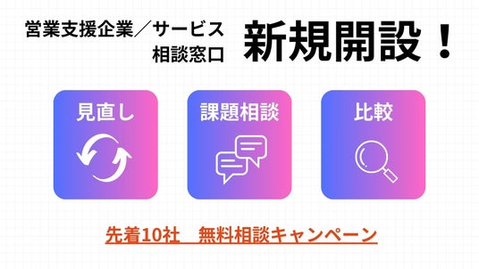 今回は、ご依頼いただいた企業の状況を伺い、その企業に合う営業支援会社、営業支援サービスを明らかにする無料相談プランを新規リリースいたします。