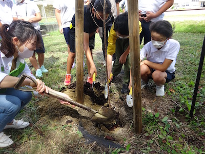 「ふるさとプロジェクト」は、和楽器の演奏鑑賞と演奏体験、植樹式を行うプロジェクトです。次世代を担う若者の挑戦・成長・能力発揮の支援を行うとともに、本物に触れる機会を提供したいという思いから、2018年から全国各地の小学校で開催しています。