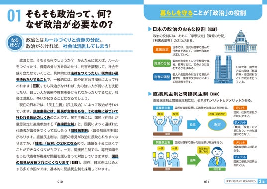 「そもそも、政治って何?」といった基本的な話から、「税金って何種類ぐらいある?」「公職選挙法って機能している?」「政治資金パーティって何?」などの疑問まで、政治に関する気になる疑問をやさしく解説します。