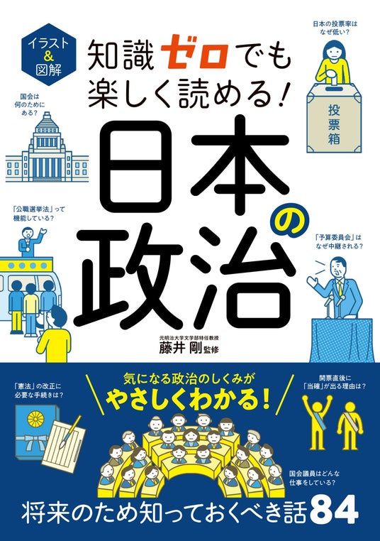 累計75万部を突破した大人気の実用書「知識ゼロ」シリーズ。最新刊のテーマは「日本の政治」です。2026年2月に行われた衆議院選挙において、自民党がひとつの党としては戦後最多となる議席数を獲得するなど、今、日本の政治が大きく動こうとしています。そんな今だからこそ知っておきたい政治の基本としくみを、素朴な疑問をもとに、豊富なイラストと図解でわかりやすくひも解いていきます。