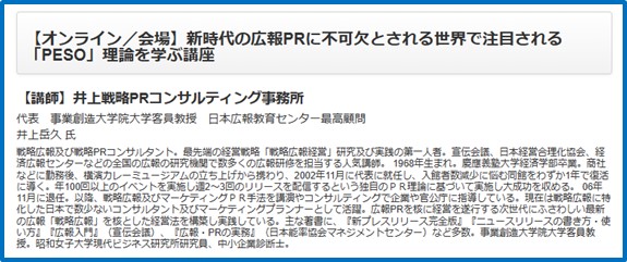講座名: 新時代の広報PRに不可欠とされる世界で注目される「PESO」理論を学ぶ講座