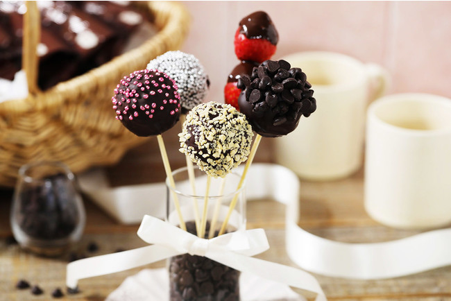 さらに、チョコチップはもちろんそのままでもご利用いただけますが、コーティング用として溶かしてご利用いただくことも可能です。チョコチップを溶かし、固まる前にお好みのトッピングをつけたらキュートなロリポップが完成!トッピング用としても溶かしてもご利用いただける便利なチョコチップは、バレンタインのお菓子作りにぴったり。ぜひ、ご自宅で思い思いにチョコチップアレンジをお楽しみください。