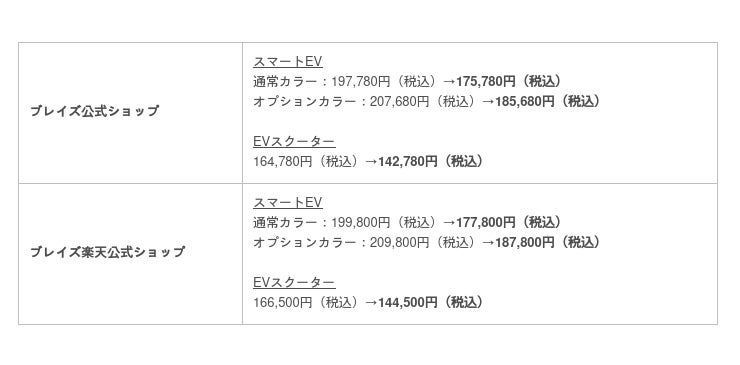 本日(6月5日)から、「ブレイズ スマートEV」および「ブレイズ EVスクーター」の各モデルを、毎週先着 各30台について特別価格でご購入いただけます。