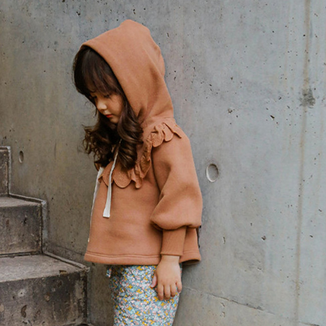 パーカー フード フリル トレーナー スウェット 全3色 アンシャンテプティセレクト商品 韓国子供服 韓国子ども服 韓国こども服 裏起毛 厚手 女の子 レース キッズ こども 幼児