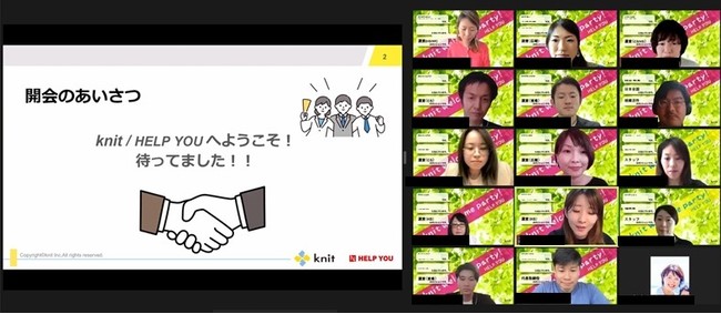 オンラインアウトソーシングサービス「HELP YOU(ヘルプユー)」を運営する株式会社ニット(本社:東京都品川区、代表取締役:秋沢崇夫、以下ニット)は、2015年にフルリモート前提で創業し、現在、約400人が日本全国・世界33カ国からオンラインで業務を遂行しています。オンラインイベントは、新型コロナウイルスの感染リスクを避けて実施できるだけではなく、メンバー全員とのつながりを創出できる点が大きなメリットです。これまでにオンライン事業の運営で培ったノウハウを活かし、令和4年6月1日、世界各国・日本全国から集まった新メンバーを迎え、「オンライン Welcome Party」を開催いたしました。