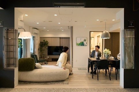 当社は2021年10月『LIVIO Life Design! SALON』にて、業界で初めて(2021年10月時点)三面大型LEDスクリーンを用いてさまざまな間取り、家具の配置を実寸大で投影する販売手法「リアルサイズスクリーン」(以下、「本スクリーン」)を開発いたしました。これまで本スクリーンを活用して15物件を販売し、体感いただいたお客さま全体の平均満足度は73点というご評価をいただいております。(2024年8月時点)