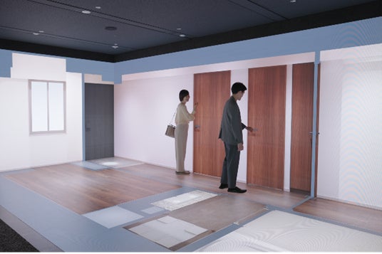 この度、さらなる体験価値の向上を目指し、業界で初めて「Apple Vision Pro」を用いて投影された実寸大の間取りに家具などの配置もリアルに体感することが可能なMR体験アプリケーションを開発し、実証実験を開始いたします。これにより、本スクリーンに投影された間取りに対し、家具の配置を重ね合わせる没入感の高いリアルなMR体験が可能になります。今後実証実験を重ね、2024年10月以降のお客さまへの案内開始を予定しています。