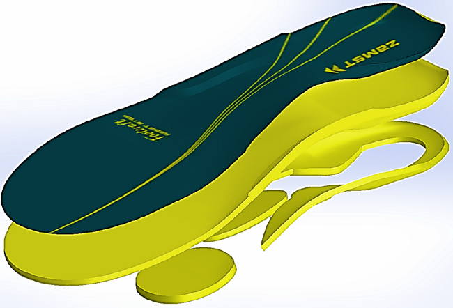ウォーキング・ジョギング時の「正しい歩行姿勢・ランニングフォームが分からない」という悩みを解決したいという思いから、インソール裏面に配置した独自のアシストパッドによって正しい足運びへ導き、理想的な荷重移動へ導く機能性インソールを開発いたしました。