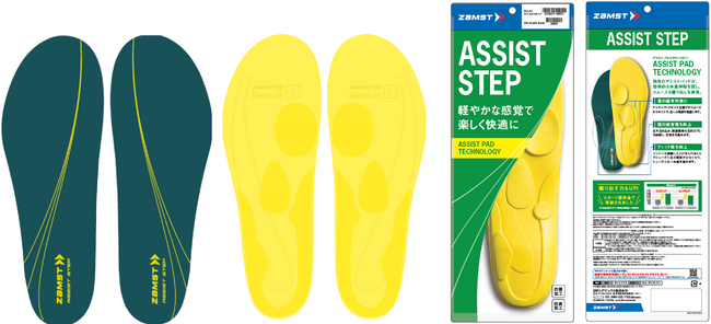 2023年3月から、ABCマート394店舗およびABCマートオンラインストアで販売を開始した、機能性インソール「ZAMST ASSIST STEP」。