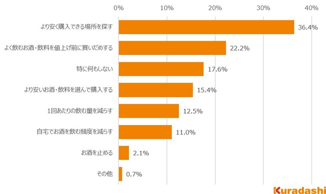お酒の値上げに対して「より安く購入できる場所を探す」と回答した人が36.4%