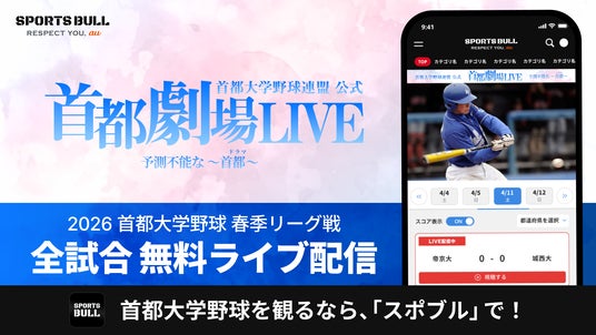 一般財団法人首都大学野球連盟(所在地:東京都渋谷区、会長:松前 義昭 、以下 首都大学野球連盟)が開催する令和8年度、首都大学野球1部リーグ戦を4月4日の開幕戦から入替戦まで、全試合無料ライブ配信いたします。