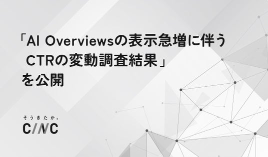 株式会社CINC(本社:東京都港区、代表取締役社長:石松友典、以下CINC)は、ユーザーの検索クエリに対してAIが回答を自動生成し、検索結果の上部に表示するGoogle検索の新機能であるAI Overviews表示の急増に伴うクリック率(以下、CTR)の変動と、AI Overviews に引用されるページの特徴に関する調査を実施し、その結果を公開しました。