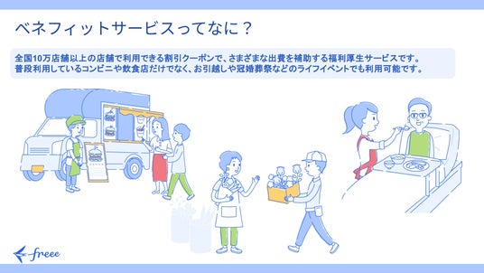フリー株式会社が提供する、全国10万店舗以上の店舗で利用できる割引クーポンで、さまざまな出費を補助する福利厚生サービスです。毎月手頃な価格で普段利用しているコンビニや飲食店だけでなく、お引越しや冠婚葬祭などのライフイベントでも利用可能です。