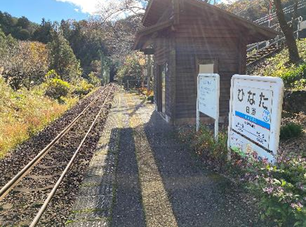 岐阜県の大垣駅から樽見駅を走るローカル線樽見鉄道の日当駅は、ポツリとログハウス風の駅舎がある無人駅。桜の名所としても知られた駅です。