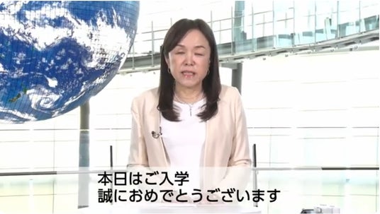 〇式典では本学卒業生で日本科学未来館館長の浅川智恵子客員教授が新入生にビデオメッセージ