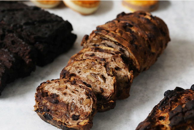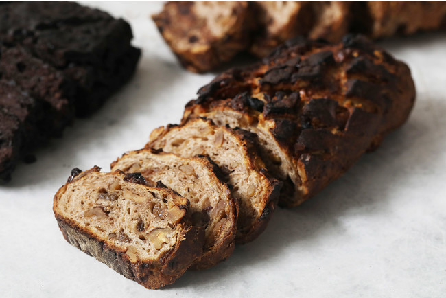 フランス産のゲランドの塩や、イタリア産の中硬水を使用した生地に、赤ワインに浸けたオーガニックの白イチジク、レーズン、クルミを合わせて焼き上げました。