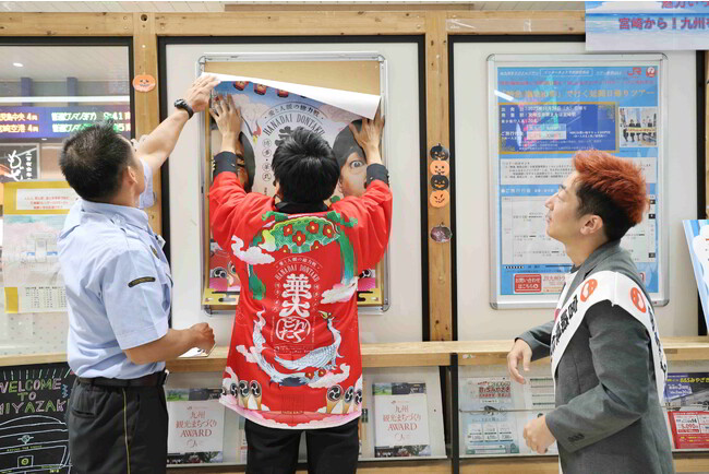 チケットレスでおなじみの「EXサービス」のメインキャラクターでもある博多華丸・大吉さんが“駅員”として、ポスターを貼り替えたり、駅の放送を行ったり、D&S列車のお出迎え・お見送りを行いました。