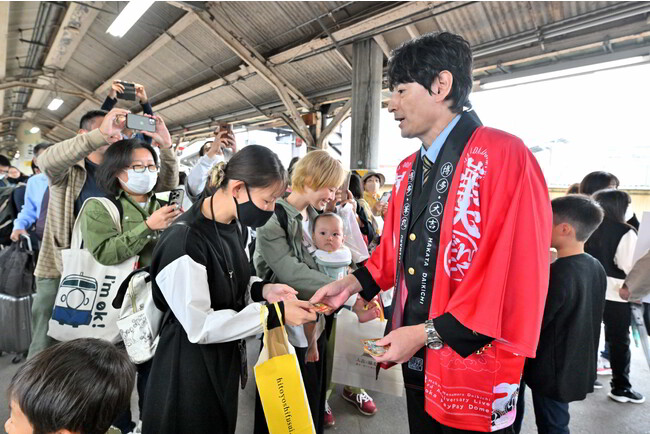 各駅ではたくさんの“応援芸人”が博多華丸・大吉さんのPRを応援しに駆けつけました。