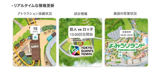 内容:よみうりランド、HANA・BIYORI、よみうりランド眺望温泉 花景の湯(HANA・BIYORI内)、TOKYO GIANTS TOWNの4施設がひとつのデジタルマップで表示できます。
