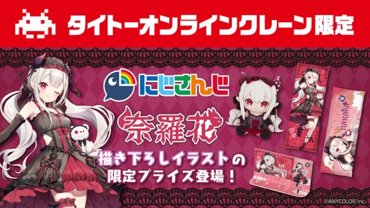 株式会社タイトー(本社:東京都新宿区、以下タイトー)が運営する、いつでもどこでもクレーンゲームが楽しめる「タイトーオンラインクレーン(以下タイクレ)」は、ANYCOLOR株式会社(本社:東京都港区)が運営するバーチャルライバーグループ『にじさんじ』とのコラボレーション全3弾を実施いたします。第1弾として、歌ってみた動画や格闘ゲーム・FPSゲームなど幅広いゲーム配信でも人気の奈羅花さんのタイクレ限定プライズが7月26日(金)20時より登場いたします。限定プライズ制作のために普段の奈羅花さんとはまた違ったミステリアスな雰囲気のイラストを新たに描き下ろししており、ファンの方々必見のアイテムラインナップとなっております。無くなり次第終了となりますので、ぜひこの特別な機会をお見逃しなく。また、限定プライズ登場を記念して同日19時に奈羅花さんのYouTubeチャンネルにて、限定プライズ獲得をかけた本人によるタイクレに挑戦するライブ配信を予定しています。