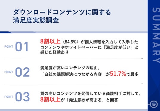 - 01|8割以上が個人情報を入力して入手したコンテンツやホワイトペーパーに「満足度が低い」と感じた経験あり