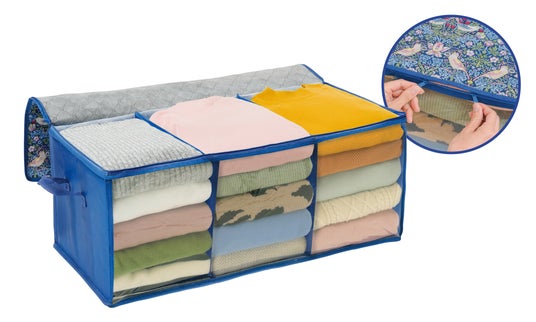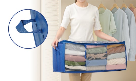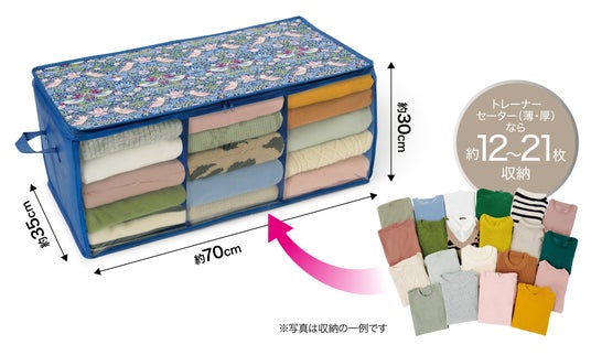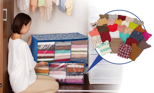 前面部には中身が見えるクリアな窓付きで確認がラクラク。衣料をほこりや汚れからガードするのはもちろん、押入れやクローゼット上段に置いても、探す手間ナシ!積み重ねても◎