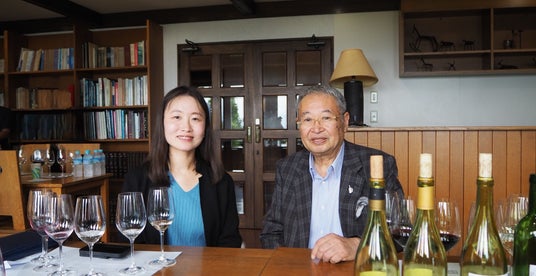 Decanter誌による取材は7月17日(木)、同誌主催ワインコンクール「Decanter World Wine Awards」で最高位プラチナ賞を受賞したサントリー登美の丘ワイナリー(甲斐市)にてスタートしました。KOJ実行委員長の三澤茂計氏が、Decanter記者のシルヴィア・ウー氏に、山梨ワインの技術の高さやこだわり、日本のワイン発祥の地(※)としての歴史などについて説明を行いました。ウー氏は、今回日本初の取材地として甲州ワインを選んだ理由として「日本のブドウ品種として『甲州』が世界的にもっともよく知られている」と話し、「生産者の技術の高さに加え、多種多様なテロワールを持つ唯一無二のワイン生産地」と甲州ワインを高く評価しました。三澤氏からは、ウー氏および同誌に対し、今回の取材に当たって「世界的権威があるDecanter誌の取材を受けることは夢のよう。『甲州』を柱に、日本のワインを世界に広めていきたい」と感謝の念を伝えました。