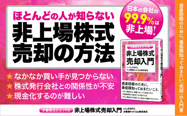 このように、非上場株式の場合は、「買い手が見つからない」「見つかっても買い叩かれる」という状況がほとんどで、売りたくても売れない状況にいる人が非常に多いのです。