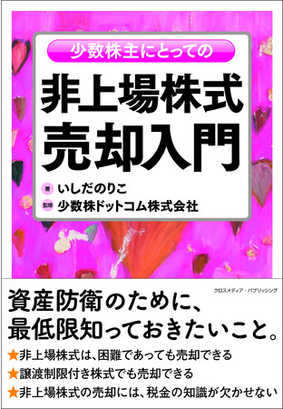 ビジネス書や実用書を中心に出版する株式会社クロスメディア・パブリッシング(本社:東京都渋谷区、代表取締役社長:小早川幸一郎)は、2023年7月21日に書籍『少数株主にとっての非上場株式売却入門』を刊行します。本書は生前相続対策支援、不動産投資等を行い、その中でも、少数株主の非上場株式売却・現金化支援のノウハウを確立してきた著者が、「非上場企業の株式」の売却方法を具体的な事例を交えながら、分かりやすく解説します。巻末では、よくある質問がQ&A形式で掲載しています。