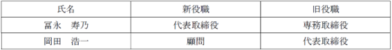 後任には前専務取締役の冨永寿乃が就任いたします。
