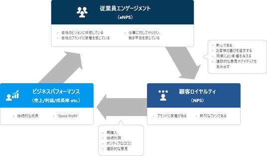 図:eNPSとNPSおよびビジネスパフォーマンスの循環