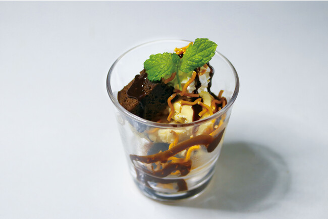 チョコレートパフェにベビースターをトッピングした甘しょっぱいショコラパフェ。ベビースターのザクザクッとした食感が面白いアクセントととなり、甘い&しょっぱいの無限ループをお楽しみいただけます。