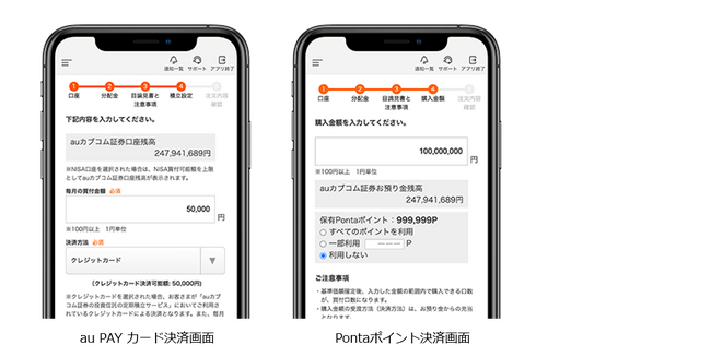 auじぶん銀行株式会社(本社:東京都中央区、代表取締役社長:石月 貴史、以下 auじぶん銀行)はauカブコム証券との金融商品仲介業務において、2023年3月30日から、「じぶん銀行アプリ」におけるauカブコム証券の投資信託の購入方法(注1)に、au PAY カード(クレジットカード)決済、およびPontaポイント利用を追加します。
