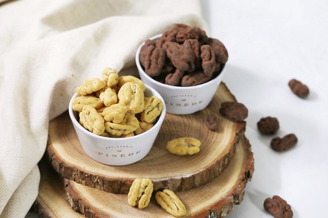 香ばしくローストしたペカンに、ホワイトチョコとキャラメルパウダーで仕上げたとろける甘みの「キャラメルペカン」と、ミルクチョコとココアパウダーでほろ苦く、程よい甘さに仕上げた「ショコラペカン」の2種類が登場いたします。
