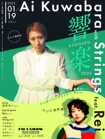有楽町にオープンしたばかりの新劇場「I’M A SHOW」で行う、桑原あいのウィズ・ストリングス・シリーズ「響楽-KYOGAKU-」に、スペシャルゲストとしてシンガー・ソングライターのReiが登場。桑原あいとRei、才能あふれる若い二人の初共演が実現します。
