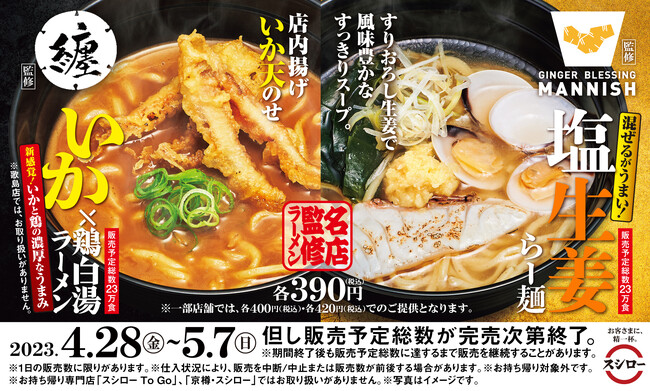 ぜひGWのこの機会に全国のスシローにて、「新橋 纏」と「MANNISH」監修のこだわりのラーメンをご賞味ください。