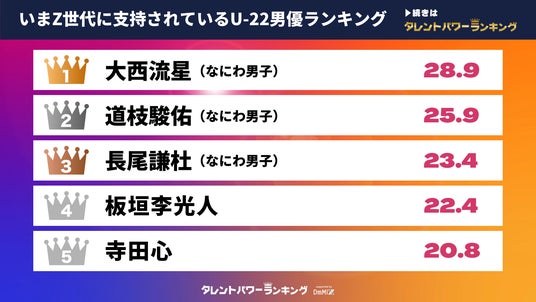 『タレントパワーランキング』では、タレントパワーランキングに登録されている22歳以下の男優について、Z世代(10代~20代前半の男女)が回答した結果を調査。