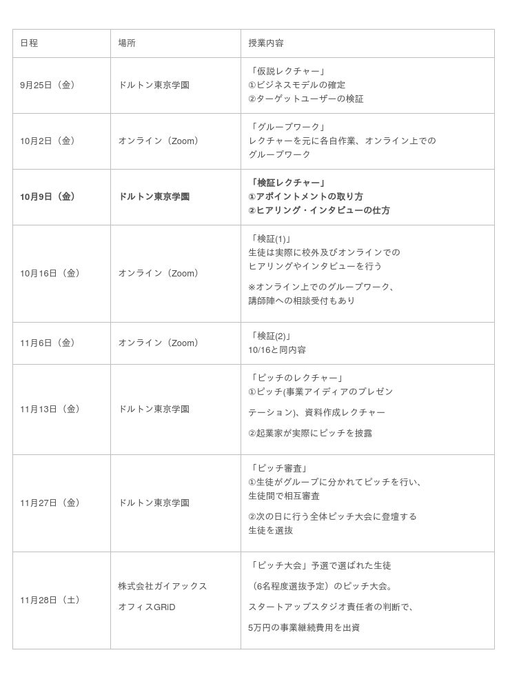 10月9日(金)にはメディア向けに「起業ゼミ」を公開し、起業ゼミの参加生徒がターゲット顧客に電話でアポイントを取り、インタビューするレクチャーを受ける様子を取材可能です。